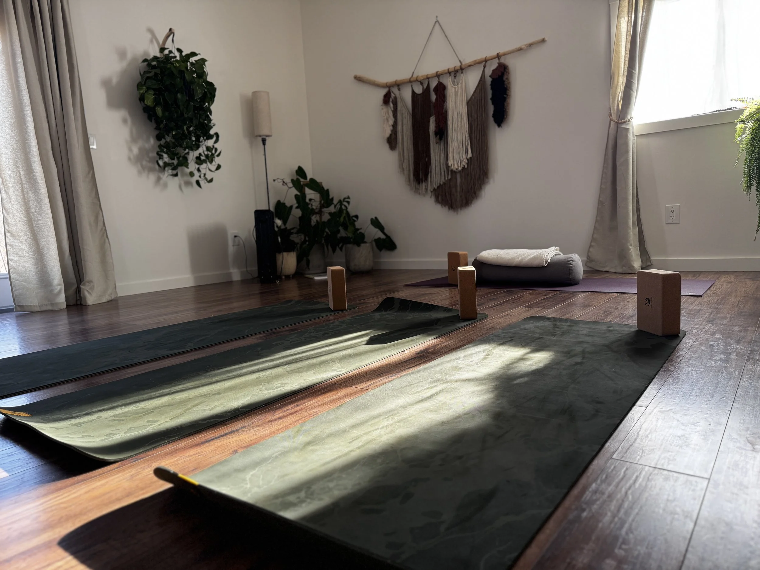 We start with a little chat, then move into some centering before working through the practice together. You'll be given a card at the start of class to let me know whether you'd like hands-on adjustments or prefer I keep my hands to myself — totally your call.